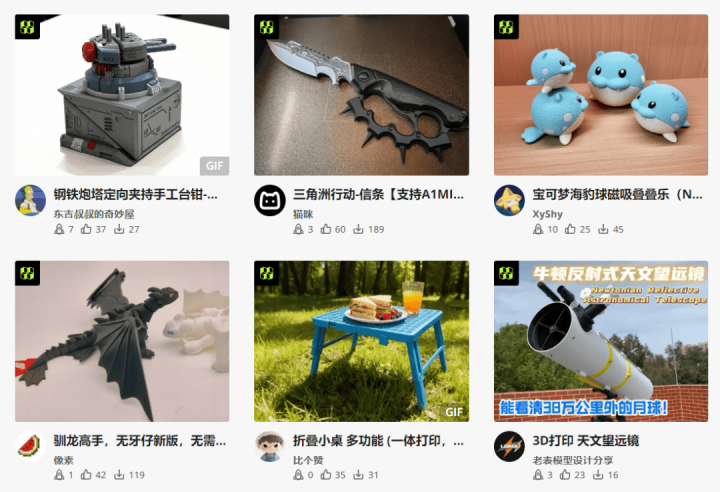 普通用户则能一键导入平台中的海量模型并打印,也能找到设备使用的相关教程用于学习。甚至拓竹为用户提供了算法推荐功能,为不同用户提供不同模型加以推荐。相关报道显示,MakerWorld的月活用户规模已经突破千万级,3D模型数量超过百万级。