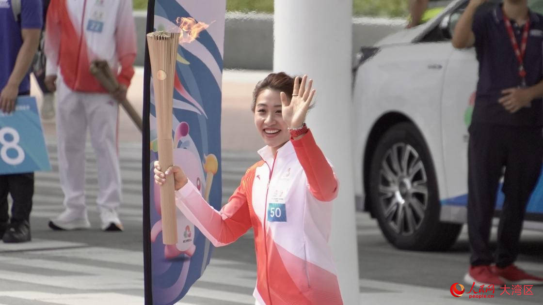 香港站最后一棒火炬手、现役港队女子重剑运动员佘缮妡。人民网 吴宇扬扬摄