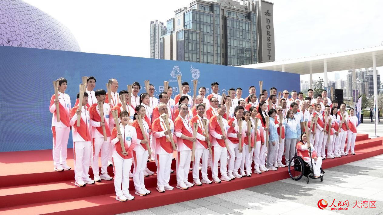 十五运会香港站火炬手合影。人民网 吴宇扬扬摄