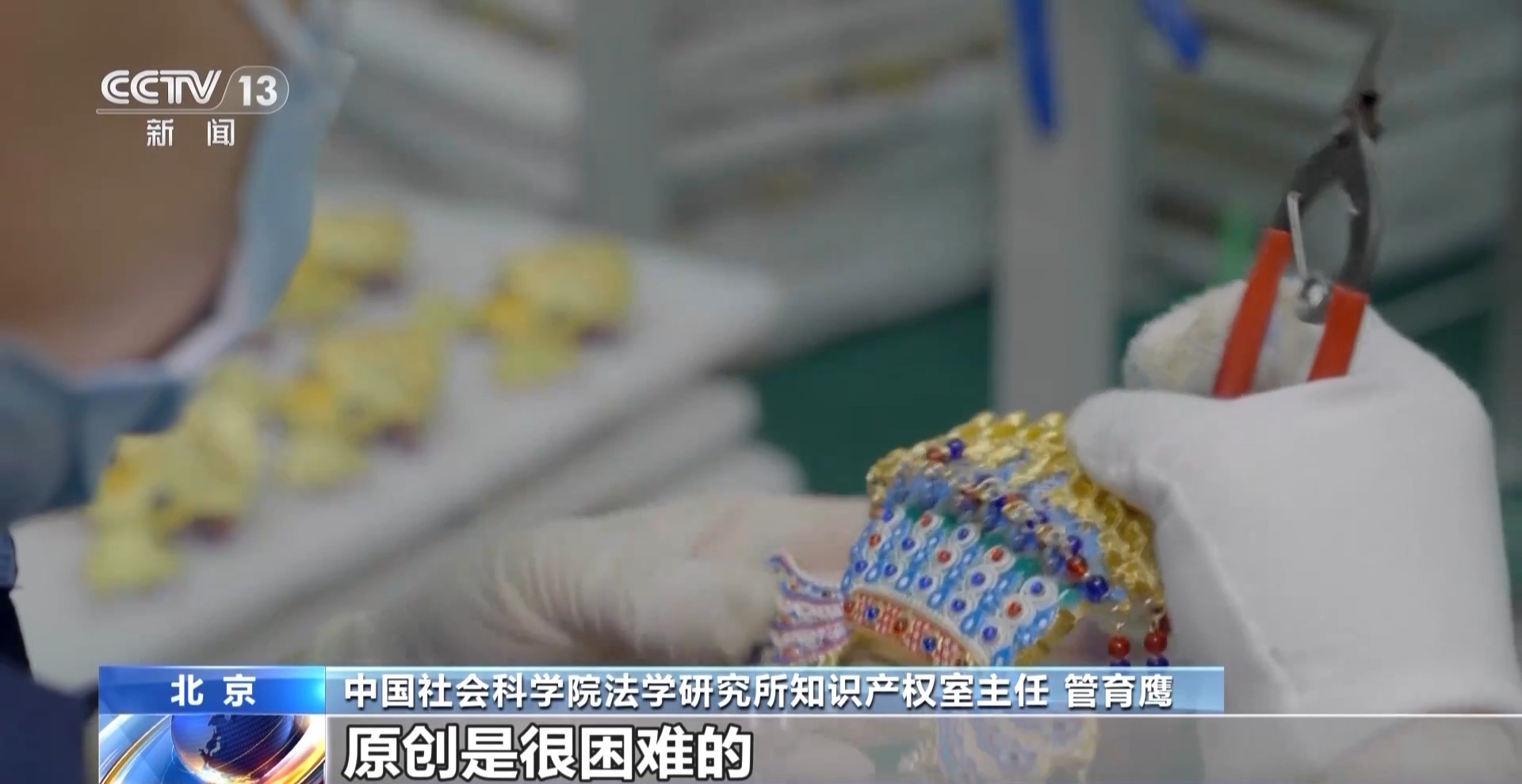 中国社会科学院法学研究所知识产权室主任 管育鹰:从著作权法的角度来说,一旦列入文物,它其实是已经过了保护期的。也就是说,如果原封不动地用古老的文物的样子,你要去拍照或者是做一个小模型,这些应该是没有问题的。但是文物保护单位重新设计,把已有的文物上面的这些图案、形状,重新开发出做一个新的产品,它是对文物的创新性的利用,所以在这种情况下,应该受到保护的智力成果。