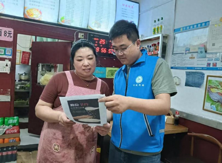 宣讲结束后,社区网格员兵分两路推进宣传:一方面逐户发放《光盘行动倡议书》,用拉家常的方式向居民倡导“按需备餐、剩菜打包”的文明生活方式,鼓励大家从家庭餐桌做起,践行节约;另一方面重点走访辖区餐饮店,向经营者和就餐顾客发放宣传资料,普及“文明用餐、绿色消费”理念,建议商家推出“小份菜”“半份菜”,提醒顾客“适量点餐、不剩饭菜”,引导双方共同参与“光盘行动”。居民们纷纷表示,通过活动深刻认识到节俭的重要性,将从每一餐做起,践行光盘理念。